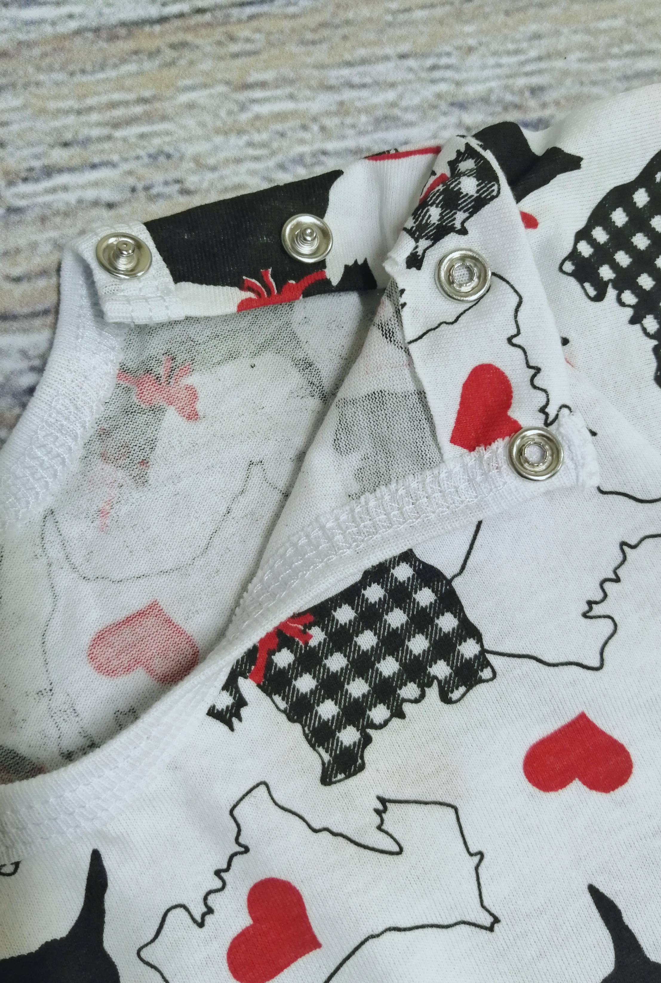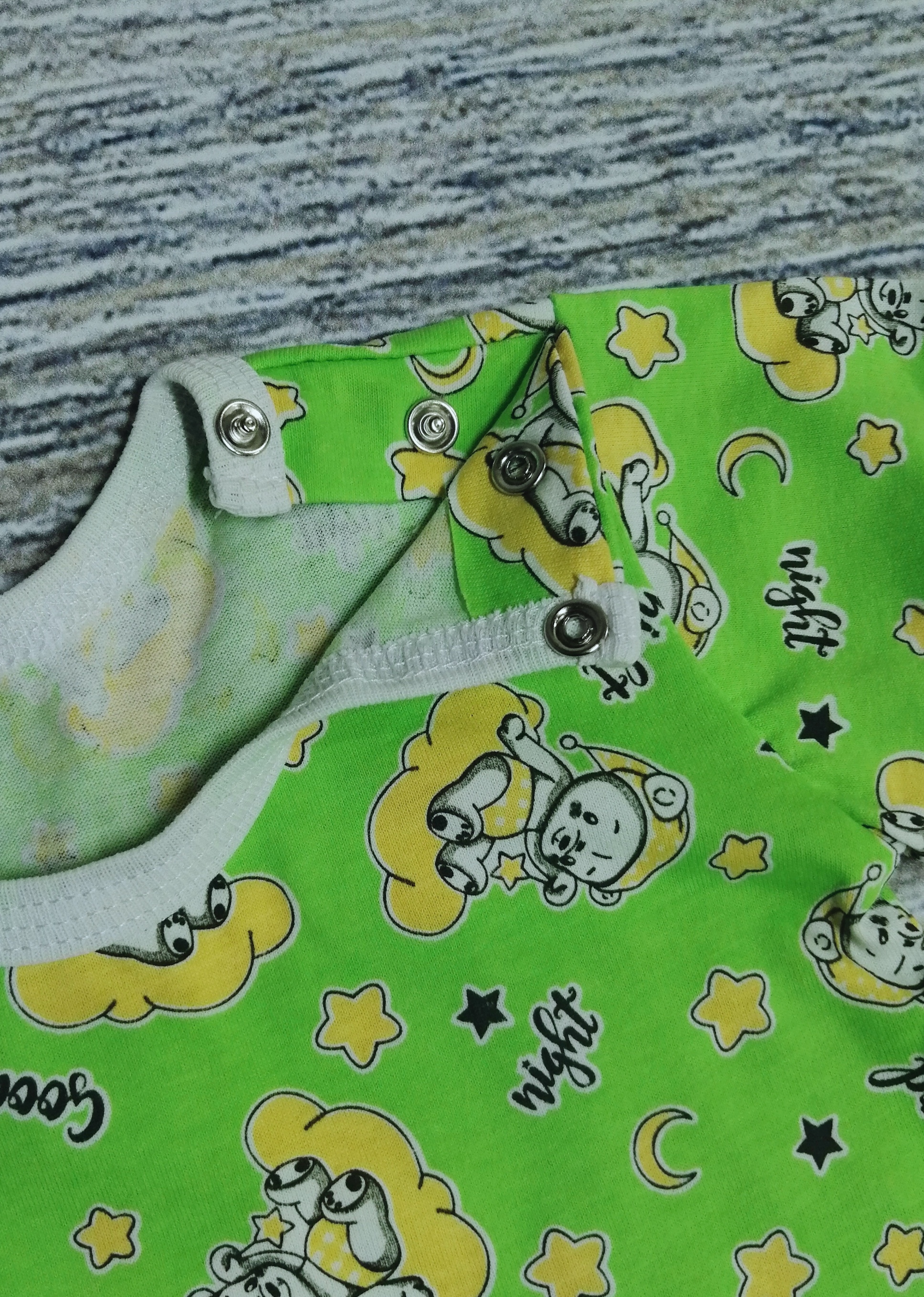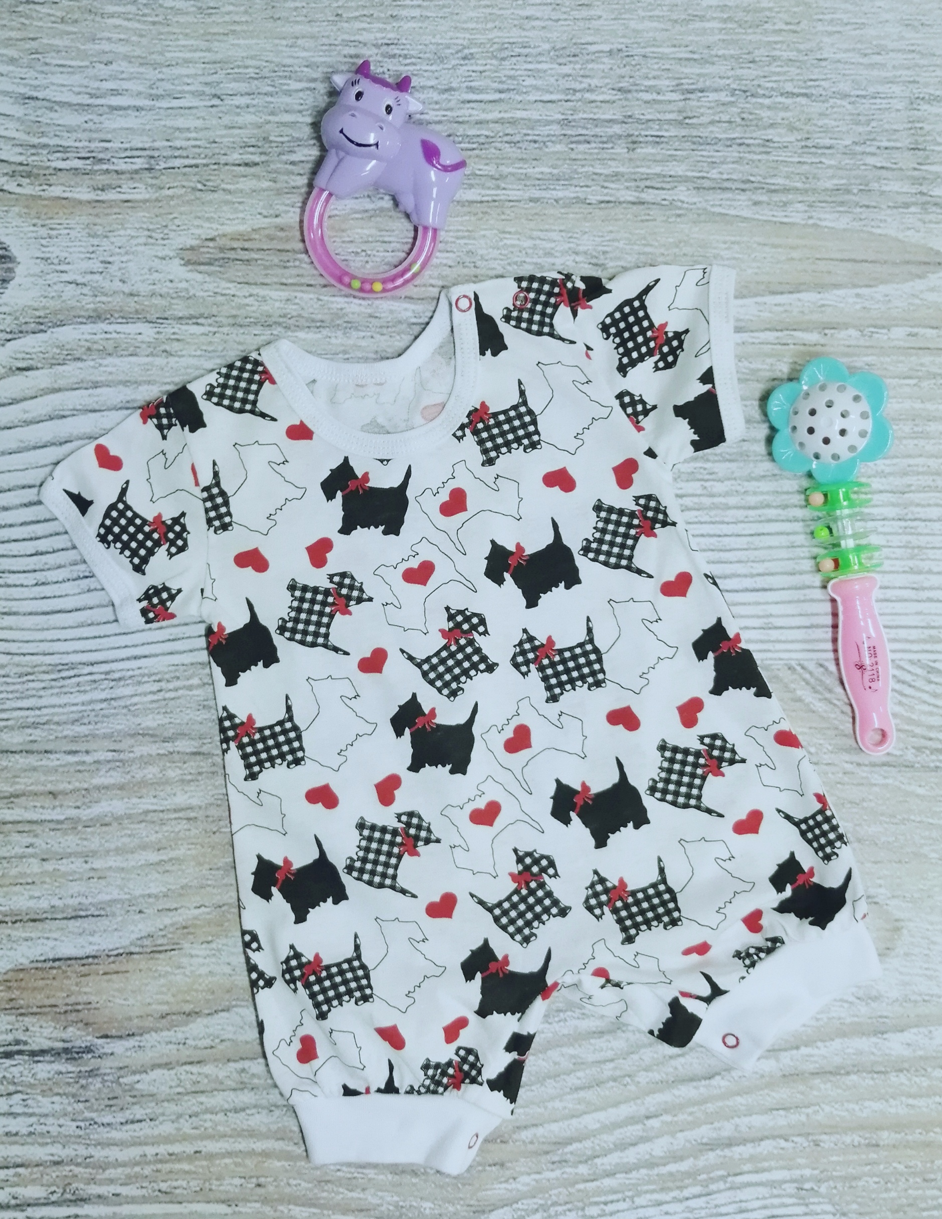 Песочник с коротким рукавом, с кнопочками на одном плече и между ножек.