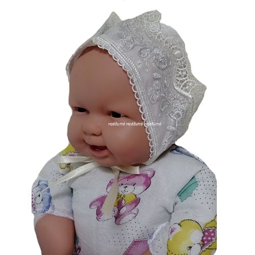 Красивый, нарядный чепчик с кружевом из гипюра.