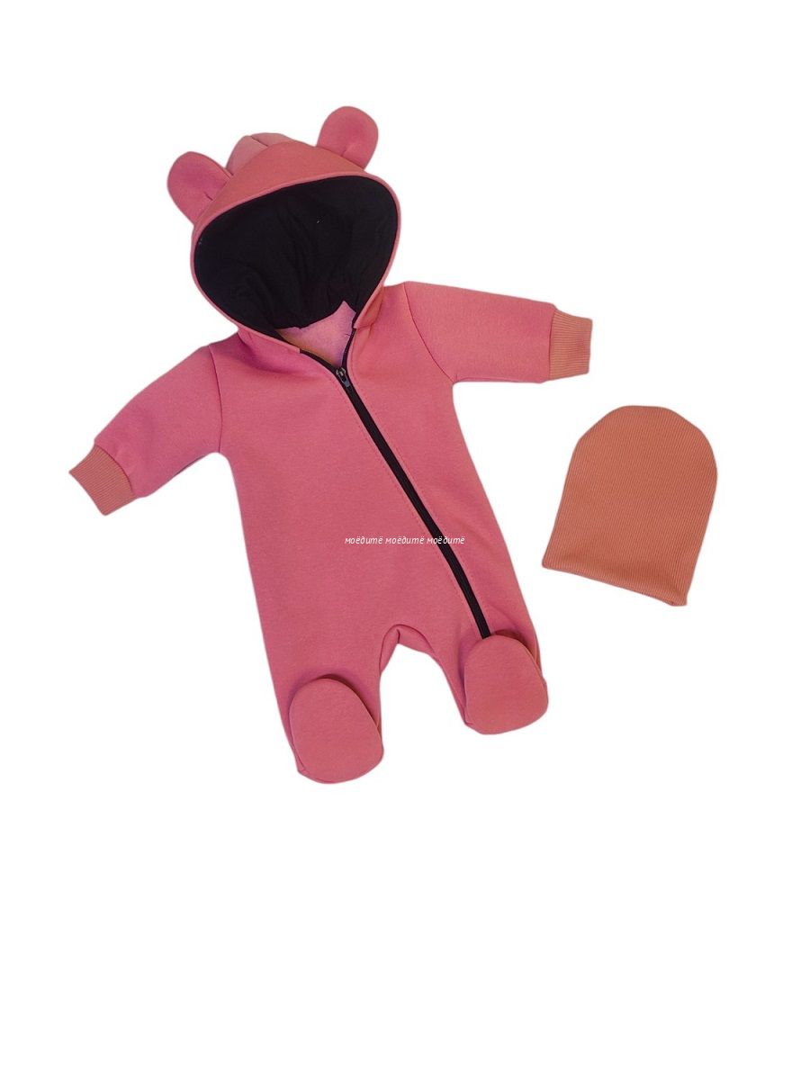 "МоёДитё" комбинезон с ушками + шапочка пыльная роза КС161 "Магнолия"